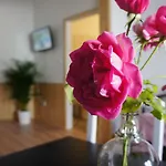 Nogle værelser har udsigt over haven. Der er separat toilet og en bruser.